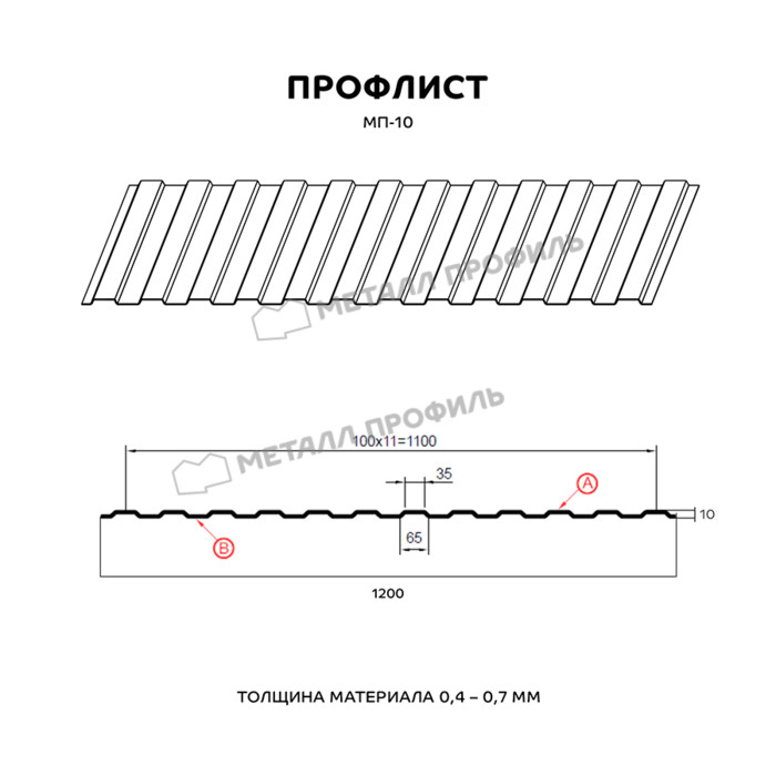 Профлист Металл Профиль МП-10 0,5 PURMAN® RAL 7024 Серый графит | B